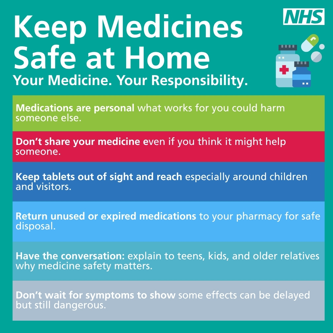 - Dispose of unused or expired medication safely — many pharmacies offer free disposal services.